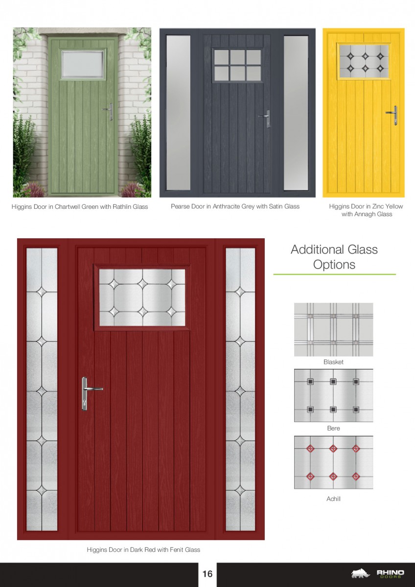 D.L Windows are delighted to have partnered up with Rhino Doors to bring the very best Composite Door range to the market. The Rhino doors use 100% CFC free high density polyurethane to insulate the inside of the door range which is the same material that is used to fill the cavity walls of our homes.This excellent insulation gives energy efficiency of 0.6w/m2.k to a Solid door and frame and 0.7w/m2.k to a Glazed door and frame.The Rhino Door is 29% more energy efficient that other composite doors. Another thing to mention is that Rhino door give excellent sound reduction of 31 decibels, this is ideal for areas with heavy noise pollution.The colour choice is endless, offering 37 colours from the brochure but can be expanded to 2'800 different colours. Also to make your front door stand out is the vast choice of decortive glass avalible which will make every home unique to the customer's requirements. There is so much to mention, more information is avilable in the brochure which can be downloaded from our download section. We truly are excited in bringing this range to the market.